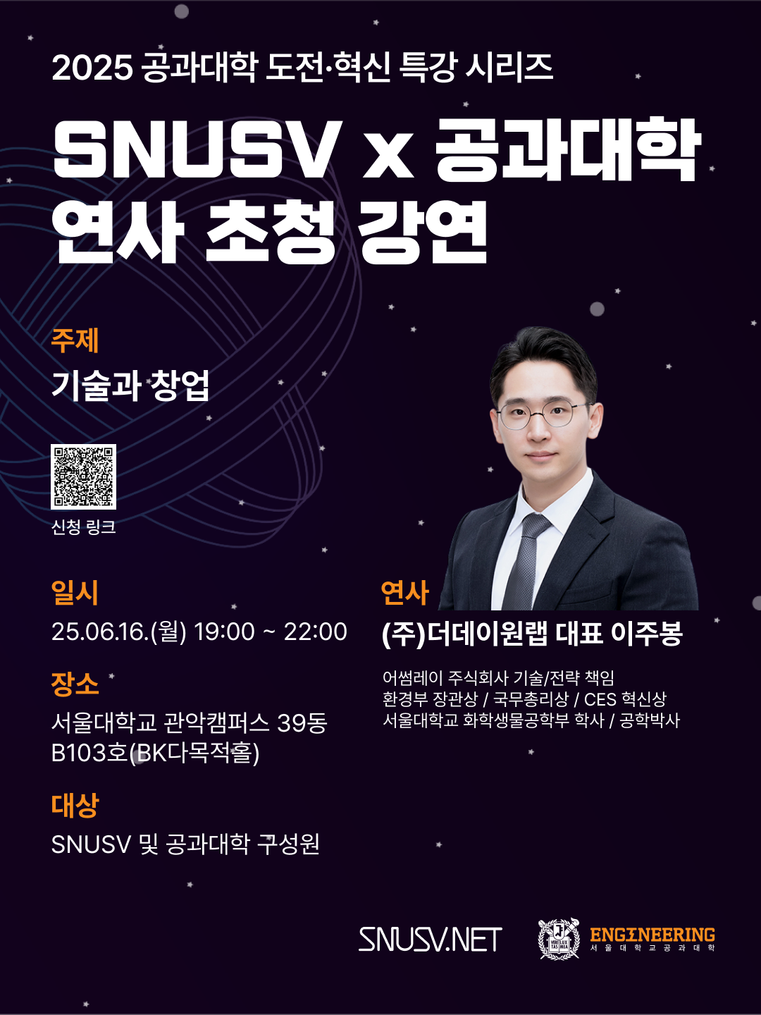 「2025 공과대학 도전·혁신 특강시리즈」개최 안내(연사 변경)