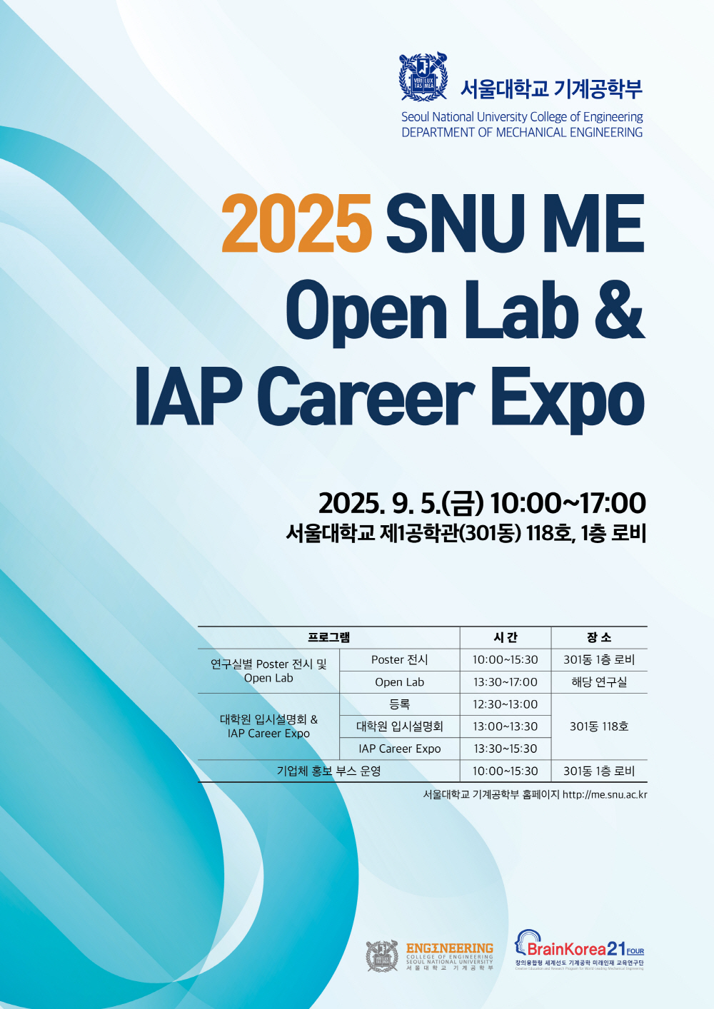 2025 SNU ME Open Lab & IAP Career Expo 행사 안내 (9/5)