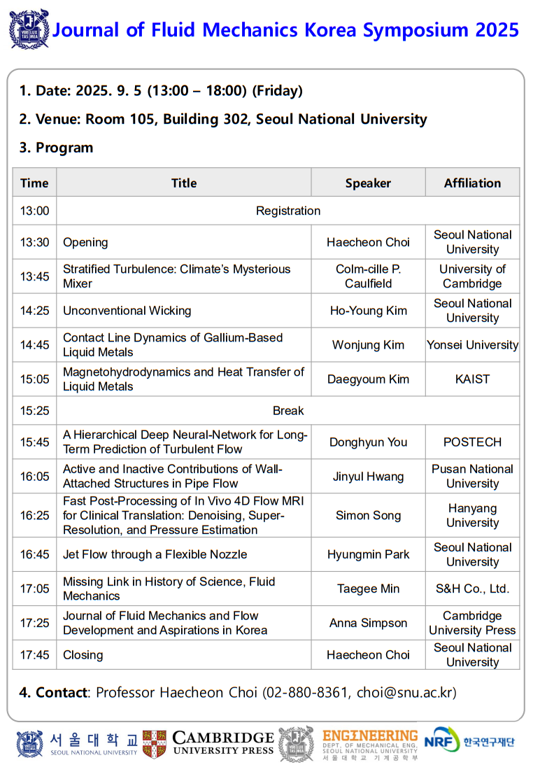 ❑ 행사명: Journal of Fluid Mechanics Korea Symposium 2025