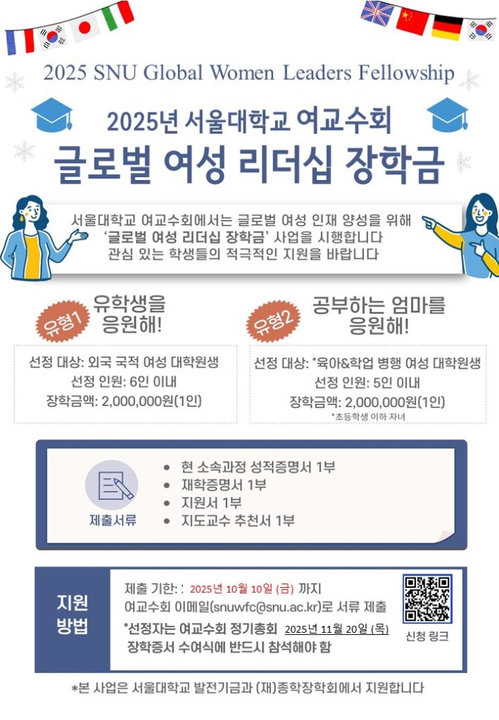 [서울대학교 여교수회] 2025 글로벌 여성 리더십 장학금 안내