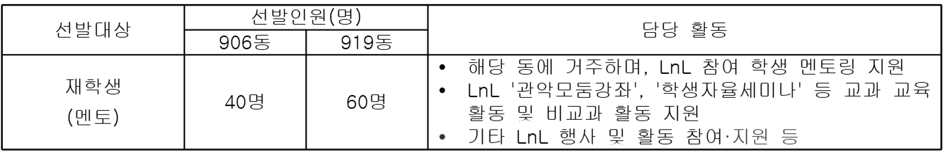 2026학년도 LnL 학부 재학생(멘토) 선발 안내