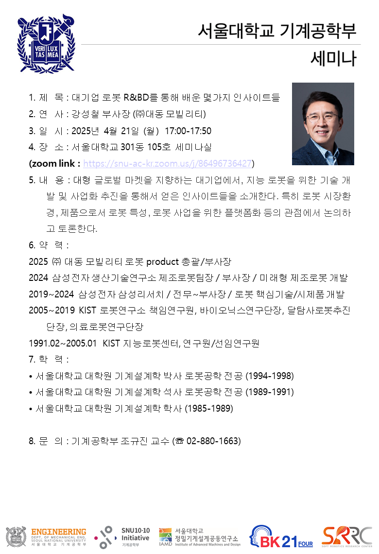 [2025-1 ME Seminar] Series on "Robotics Seminar"/강성철부사장((주)대동모빌리티)