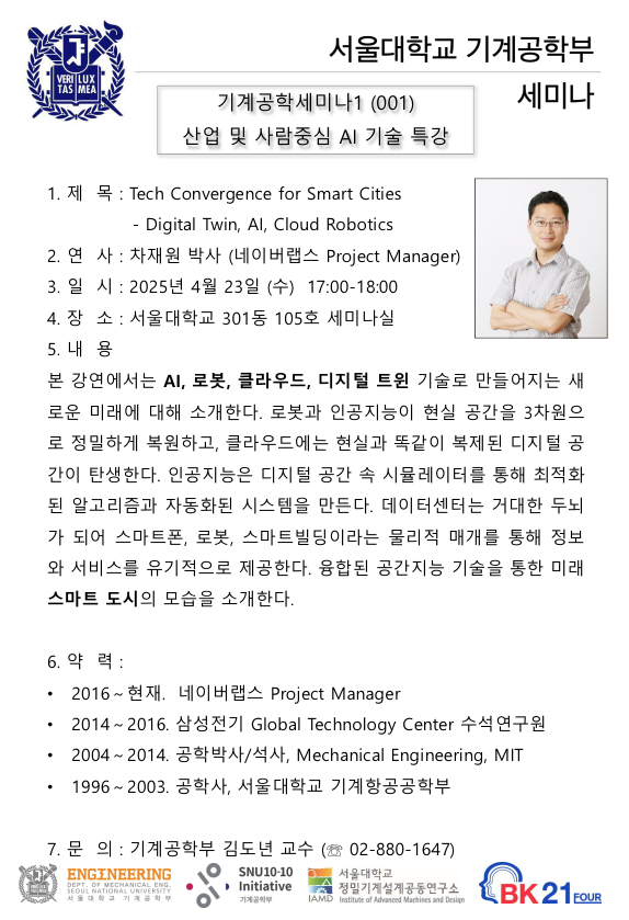 [2025-1 ME Seminar] Series on "Mechanics Seminar" / 차재원박사(네이버랩스)